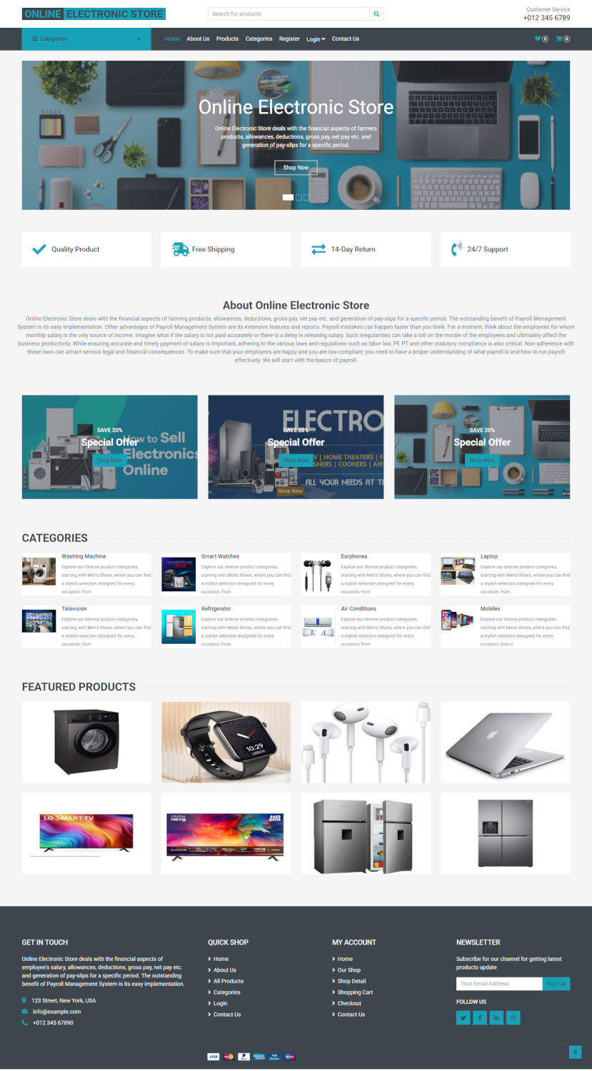 Modules and Description of Online Electronic Store Project: