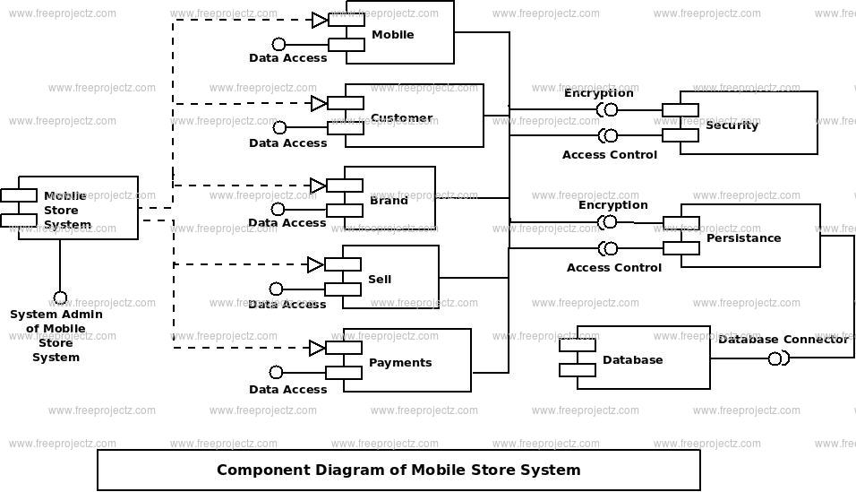 This is a Component diagram of Mobile Store System which shows components, provided and required interfaces, ports, and relationships between the Mobile, Brand, Stock, Customer and Sell. This type of diagrams is used in Component-Based Development (CBD) to describe systems with Service-Oriented Architecture (SOA). Mobile Store System UML component diagram, describes the organization and wiring of the physical components in a system.