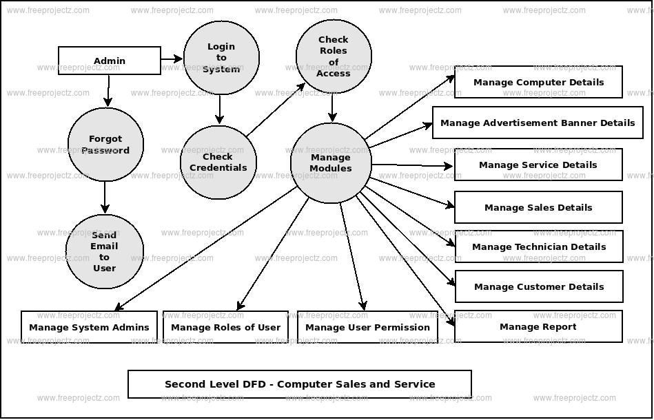 Second Level Data flow Diagram(2nd Level DFD) of Computer Sales and Service :