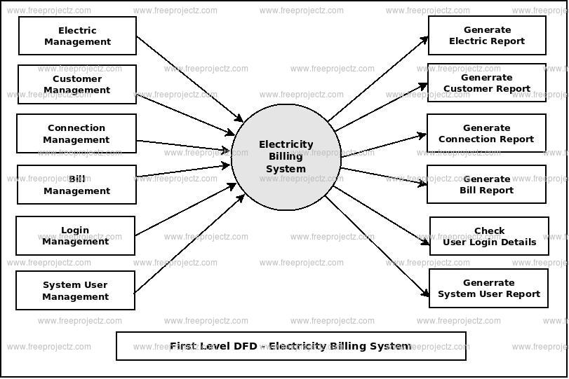 First Level Data flow Diagram(1st Level DFD) of Electricity Billing System :