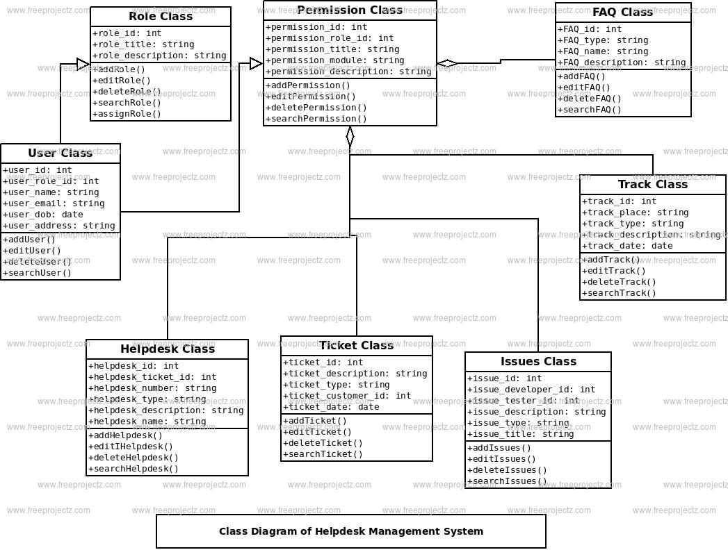 Classes and their methods of Helpdesk Management System Class Diagram: