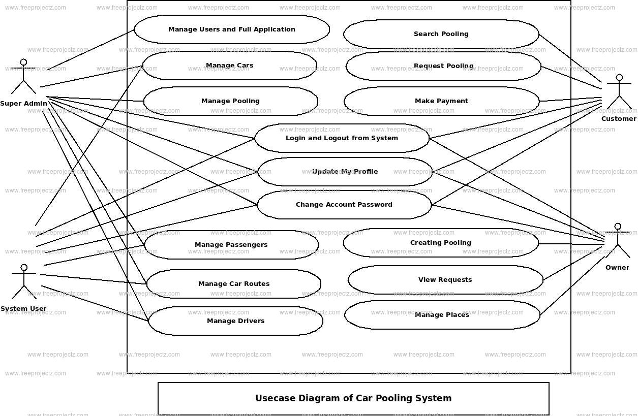 Use Case Diagram of Car Pooling System :
