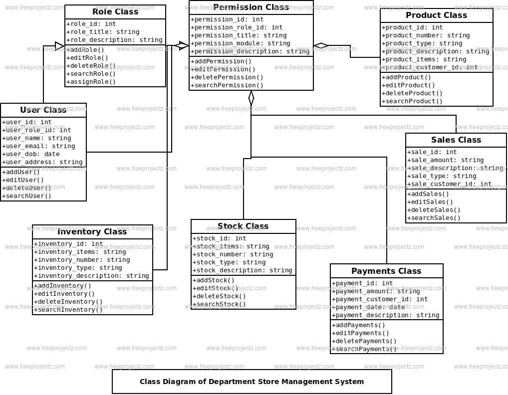 Classes and their methods of Deparment Store Management System Class Diagram: