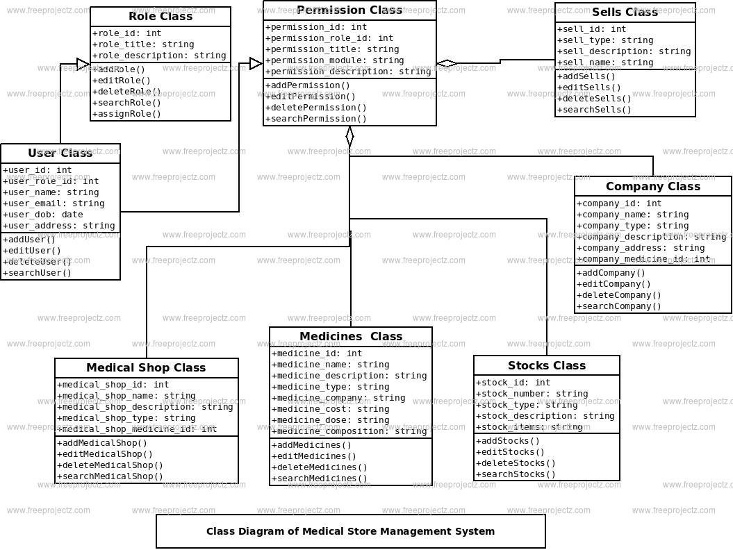 Classes and their attributes of Medical Store Management System Class Diagram: