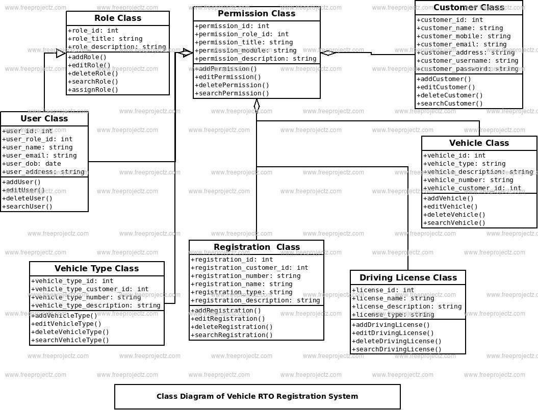 Classes and their methods of Vehicl RTO Registration System Class Diagram: